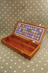 Cette belle boîte rectangulaire vous permettra de ranger vos bobines de fil. À l’intérieur, une séparation permet d’aligner côte à côte deux rangées de bobines. À titre d’exemple, elle peut contenir :