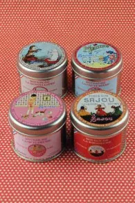 Elle est logée dans une boîte en métal ronde dont le couvercle est imprimé de notre petite fille et son chat.