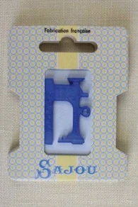 Breloque évoquant une machine à coudre façon opaline bleu.