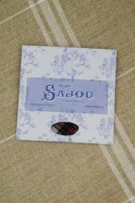 Elle est gravée au nom de SAJOU, qui apparaît en noir et comporte une petite fente permettant d’arrêter le fil.