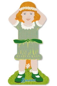 Les petites filles modèles de la famille 1, Flavie, Balsamie, Rosalie et Marie sont vêtues d’une petite robe à motif fleuri et à col de dentelle. Ces délicieuses petites filles modèle sont de grandes cartes, qui vous permettront de ranger vos restes de fils et de rubans d’une manière très amusante. Deux couleurs de fil peuvent être rangées sur la même carte : une au-dessus de la ceinture, l’autre en dessous. Ces cartes sont imprimées de manière différente au recto et verso, sur un carton épais de 2 mm d’épaisseur.