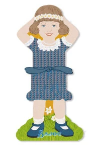 Les petites filles modèles de la famille 3, Frédérique, Véronique, Dominique et Monique sont vêtues d’une petite robe à motif fleuri et à col de dentelle. Ces délicieuses petites filles modèle sont de grandes cartes, qui vous permettront de ranger vos restes de fils et de rubans d’une manière très amusante. Deux couleurs de fil peuvent être rangées sur la même carte : une au-dessus de la ceinture, l’autre en dessous. Ces cartes sont imprimées de manière différente au recto et verso, sur un carton épais de 2 mm d’épaisseur.