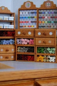 Ce casier étiquettes Articles de Mercerie est la réduction à l’échelle 1/12e des meubles que nous utilisons dans notre show-room de Versailles et dans notre boutique Sajou à Paris.