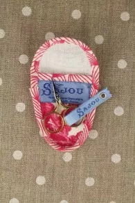 En Toile de Jouy rose, ce petit étui convient pour nos ciseaux Petits Monstres et nos ciseaux miniatures. Il est en toile épaisse avec notre motif Plaisirs de la Campagne rose et bordé d’un biais qui lui est coordonné. Son rabat est en lin 12 fils blanc cassé, permettant de broder une initiale ou un petit motif. Étant donnée la taille de l’imprimé, chaque étui est unique. Sous le rabat, une étiquette Sajou bleue.