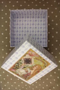 Cette boîte est recouverte à l’extérieur et à l’intérieur d’un de nos papiers bleus dont le motif peut varier.