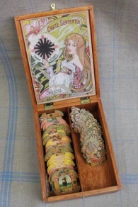 L’étiquette a été inspirée par celle d’une boîte de cartes à fil ancienne.