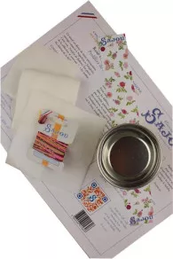 Pour le montage, vous aurez besoin d’un pinceau, d’un peu de colle à tissu et d’un chiffon propre. Vous trouverez ci-dessous une vidéo vous montrant comment réaliser la broderie au point avant et une autre pour le montage de la boîte.