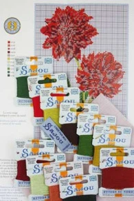 Ce kit de point de croix vous permettra de broder de beaux dahlias rouges, ouvrage dérivé de notre spectaculaire grille consacrée aux Plantes Tinctoriales dans la Collection Musées et Patrimoine.