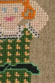 Il s’agit de point de croix sur deux fils de trame du tissu, certains détails comme la dentelle de la robe ou le contour de la ceinture étant réalisés sur un seul fil. Tout est expliqué en détail sur la fiche.