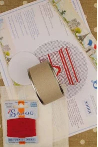 La broderie se réalise au point de croix sur deux fils de tissu avec deux brins de Retors du Nord.