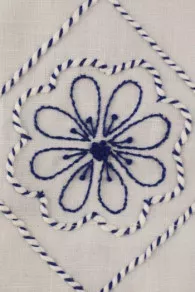 Vous aurez aussi besoin : d’une aiguille pointue à gros chas pour le fil Rochefort, d’une aiguille à broder pointue, d’un tambour à broder et d’un stylo FriXion.