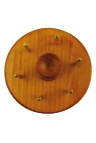 Le diamètre du socle est de 12 cm, il est teinté couleur merisier. La hauteur de chacune des tiges est de 6 cm, elles sont de couleur dorée.