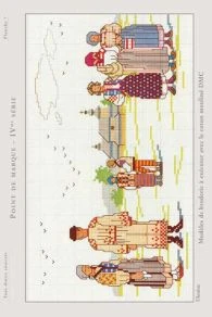 Ce quatrième volume, ou IVme série, comporte 24 pages dans lesquelles vous trouverez six alphabets, dont deux sont combinables entre eux, dix pages de frises et petits motifs, ainsi que trois pages de saynètes représentant des costumes folkloriques d’Ukraine, de Yougoslavie et de Roumanie. En fin d’ouvrage, figure un historique illustré de la Maison DMC.