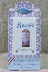 Ce présentoir est la réduction à l’échelle 1/12e du véritable présentoir 35 cartes présentant une sélection de nos aiguilles. Il est fabriqué en bois de hêtre pourpre, teinté merisier.