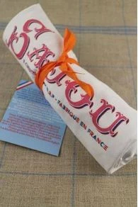 Présenté roulé avec ruban coloré (nous avons évité le sachet plastique individuel).