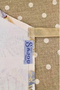 Tissu 100 % coton – Liens 100 % lin – Étiquette Sajou bleue sur un des côtés.
