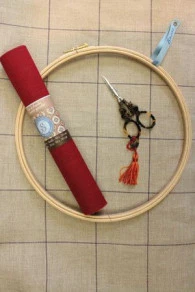 Il est nécessaire que le morceau de toile à broder soit un peu plus grand que le tambour.