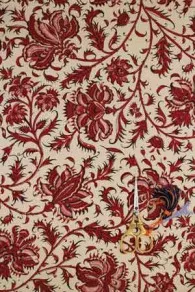 Tissu indienne grand motif fleuri rouge foncé sur fond beige – motif 66 – au mètre