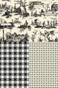 Toile de Jouy pur coton carreaux écrus et noirs au mètre
