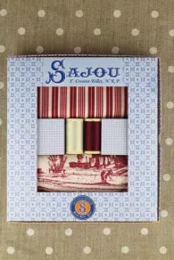Trois coupons toiles de Jouy bordeaux en boîte cadeau