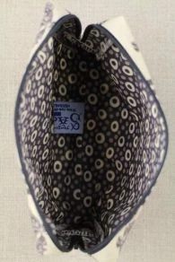 L’extérieur est dans notre toile cirée Offrande à l’Amour gris coordonné 1 et l’intérieur en coton dans le motif principal de cette toile de Jouy.