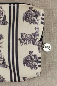 Cette trousse se ferme par une fermeture à glissière avec un médaillon Sajou argenté.