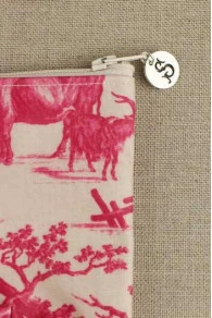 Grande trousse en toile enduite dans notre tissu Plaisirs de la Campagne rose.